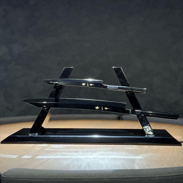 鮨一幸黒刀2本セット(受注生産・漆塗り包丁台付)